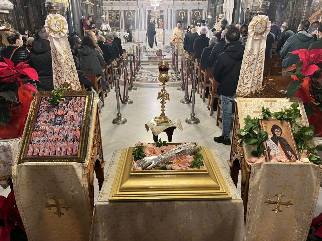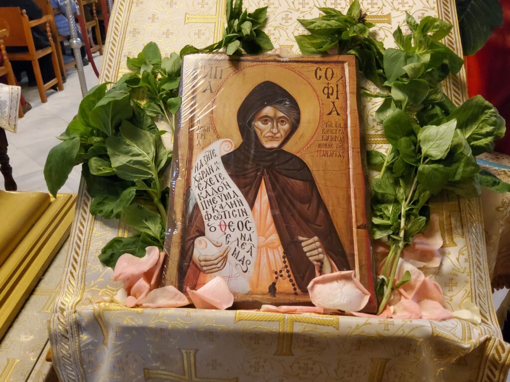 Ο εορτασμός της συμπλήρωσης των 100 χρόνων από την θεμελίωση του Ιερού Ναού των Αγίων Πάντων συνεχίστηκε την Κυριακή 8/12 με την υποδοχή τμήματος της τιμίας χειρός της Οσίας Σοφίας της εν Κλεισούρα. Το λείψανο κόμισε ο Σεβασμιώτατος Μητροπολίτης Καστορίας κ. Καλλίνικος. Τελέστηκε Όρθρος και Θεία Λειτουργία ιερουργούντος του Σεβασμιωτάτου και ακουλούθησε ομιλία του, με θέμα «Ο Βίος Της Οσίας Σοφίας» . Το ιερό λείψανο θα παραμείνει στον ναό μέχρι και την Τρίτη 9/12.